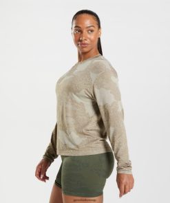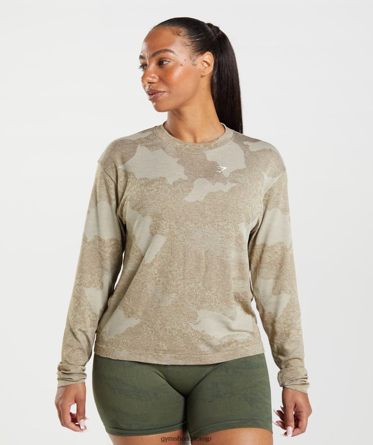 衣類 Gymshark アダプトカモシームレス長袖トップ ペブルグレー/ソウルブラウン 女性 T2X264477