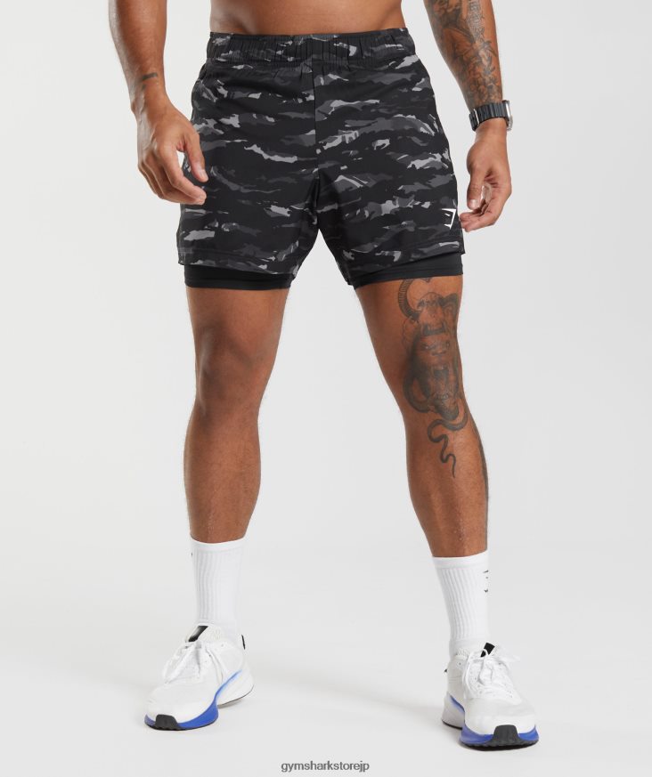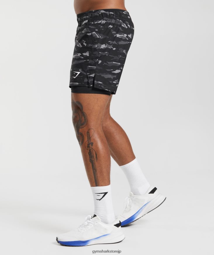 衣類 Gymshark スポーツ 5 インチ 2 in 1 ショーツ オニキスグレー/ブラック 男性 T2X264522