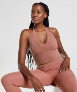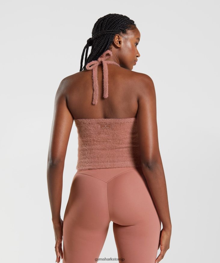 衣類 Gymshark ホイットニー アイラッシュ ニット ミディ ホルター トップ キャニオンレッド 女性 T2X264447