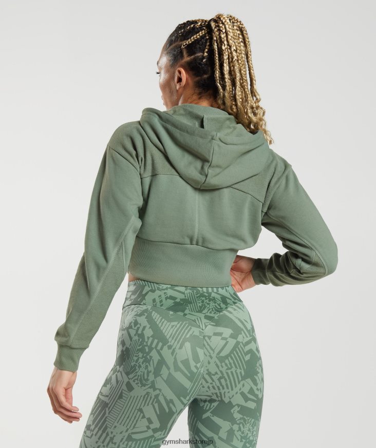 衣類 Gymshark GS パワー クロップド ジップ パーカー 柳の緑 女性 T2X264397