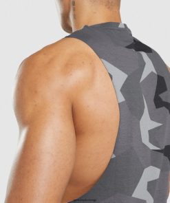 衣類 Gymshark クリティカルドロップアームタンク 黒のプリント 男性 T2X264949