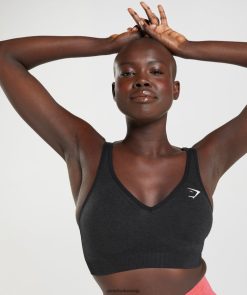 衣類 Gymshark バイタル シームレス 2.0 V ネック スポーツ ブラ ブラックメランジ 女性 T2X264152