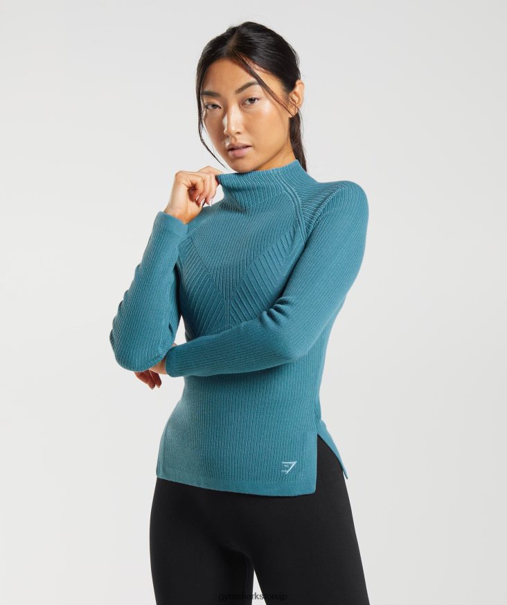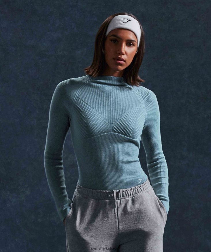 衣類 Gymshark ポーズニットウェア長袖トップ チャードブルー/テイムブルー 女性 T2X264446